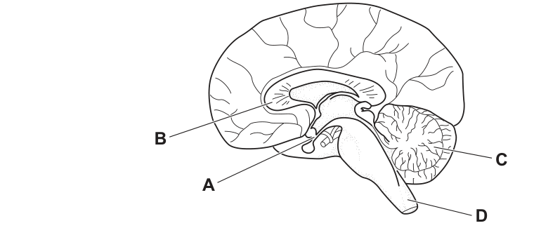 Which labelled part contains the temperature regulation centre?