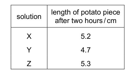 After two hours, he removes the potato pieces from the sugar solutions and measures their