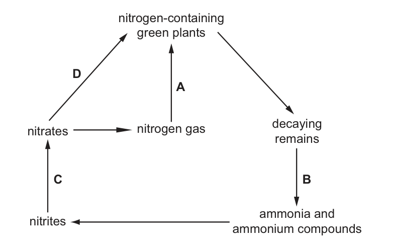 The diagram shows parts of the nitrogen cycle.