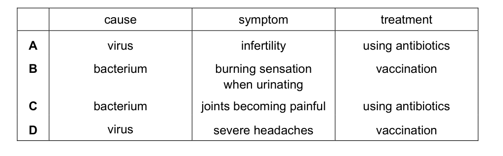 What identifies a cause, a symptom and a treatment for syphilis in humans?