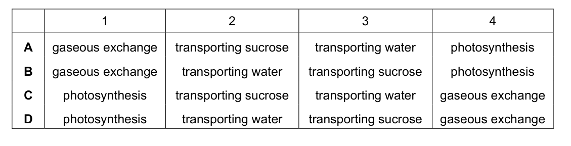 By which process does water vapour pass out of a leaf?