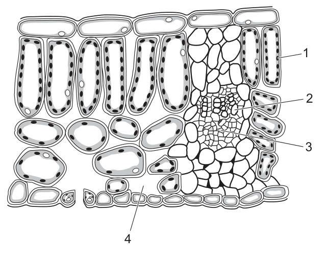 The diagram shows a transverse section through a leaf.