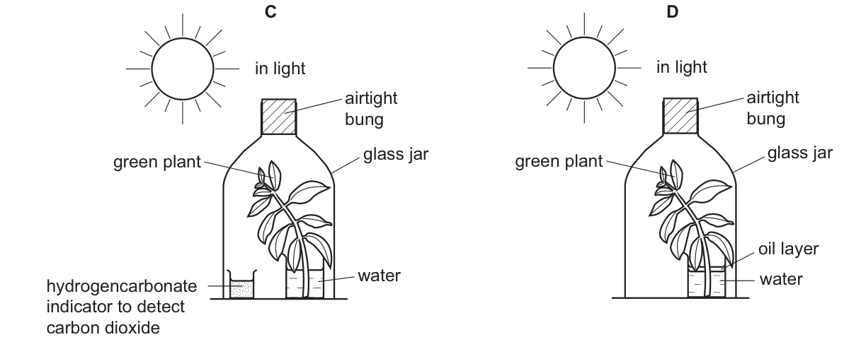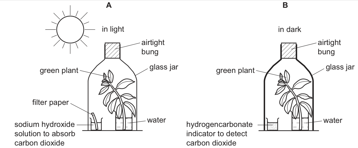 Which diagram shows the experiment carried out to investigate the need for carbon dioxide in