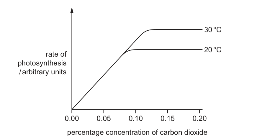 The graph shows the rate of photosynthesis in a plant in full sunlight at two different temperatures