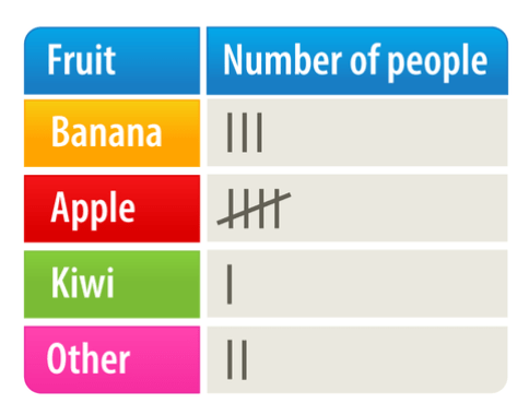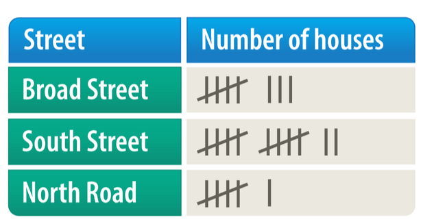 Choose the correct missing tally and frequency on the diagram below.